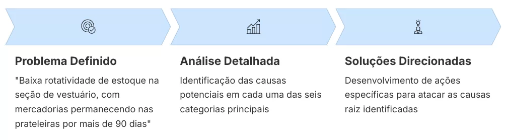 Baixa Rotatividade de Estoque Vamos aplicar a metodologia para analisar um problema comum no varejo: a baixa rotatividade de estoque em uma loja de departamentos.